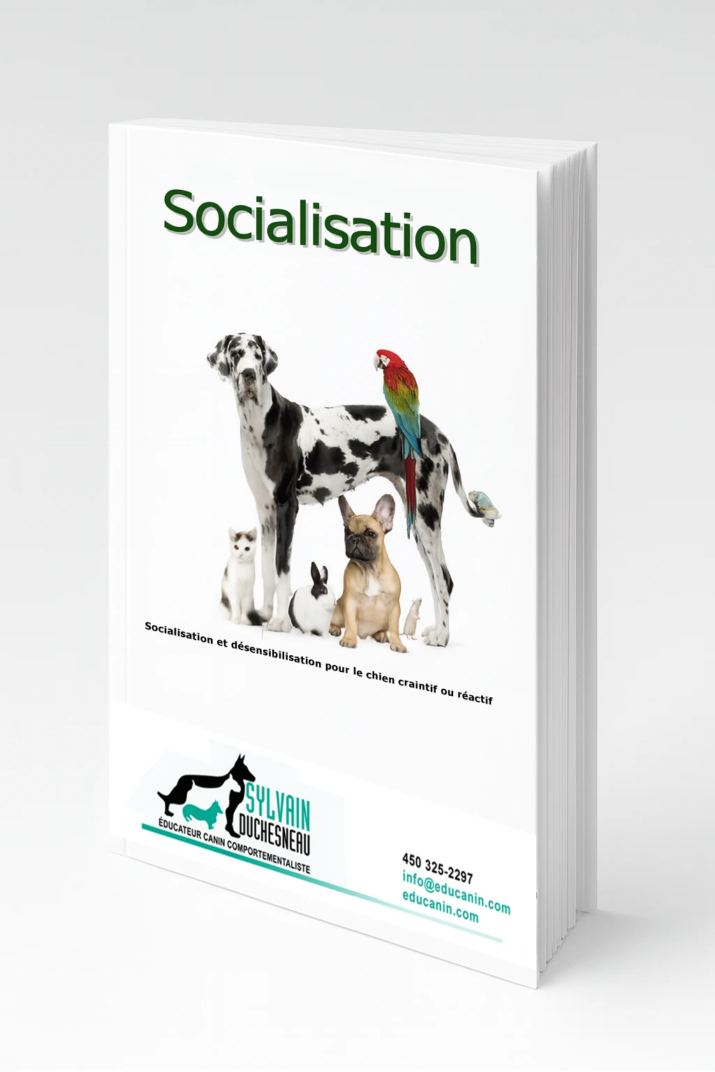 Ce document officiel de 60 pages accompagne le cours en présentiel de Sylvain Duchesneau, comportementaliste canin avec plus de 35 ans d’expérience au Québec. Il peut aussi être acheté séparément par toute personne souhaitant approfondir ses connaissances sur la socialisation canine et le comportement du chien.